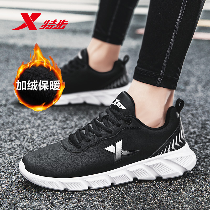 冬季 2025新款 轻便保暖加绒跑步鞋 休闲鞋 特步男鞋 子皮面运动鞋 棉鞋