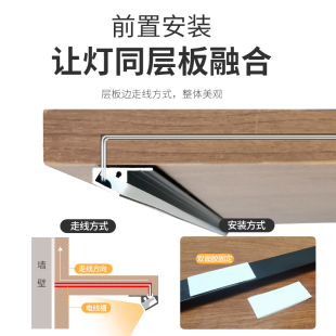 LED斜发光层板灯免开槽明装 线性灯衣柜酒柜玄关隔板长灯条带感应