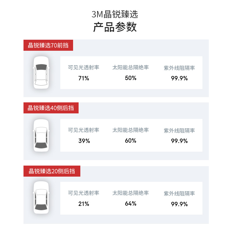 3M晶锐臻选汽车贴膜仿生光学纳米高清隔热防晒防爆玻璃全车贴膜