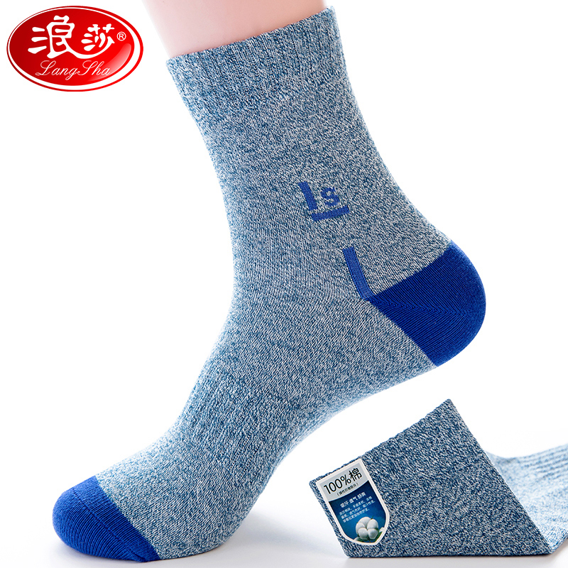 浪莎袜子男纯棉抗菌防臭中筒袜春秋厚款 男袜秋冬全棉黑色商务长袜