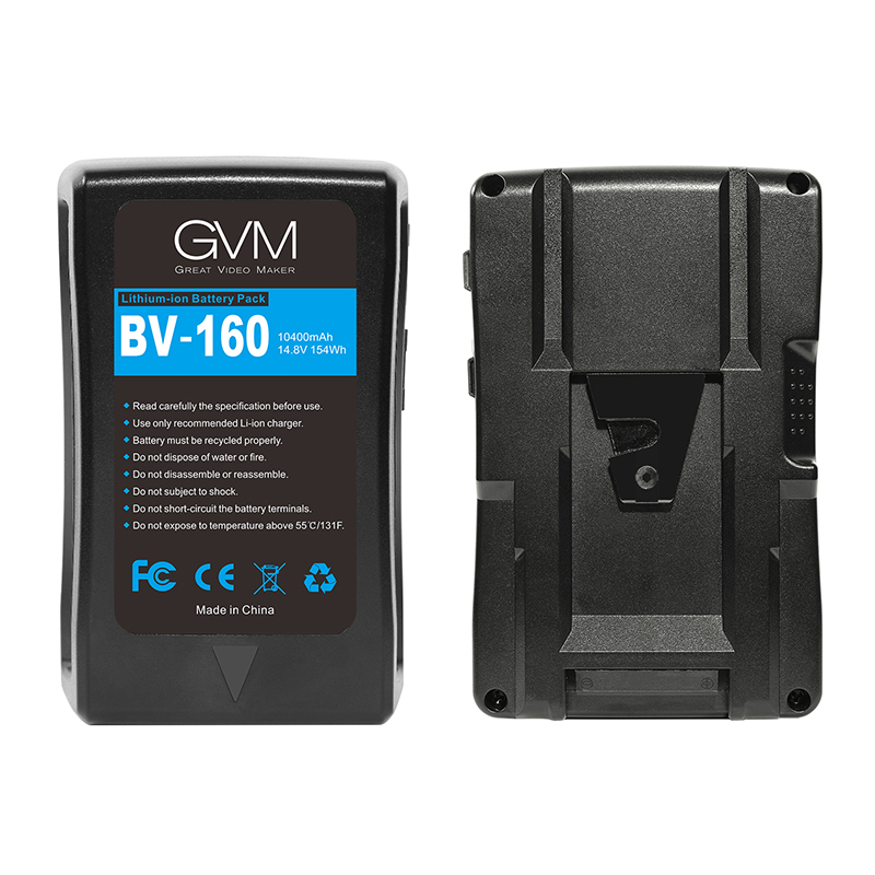 GVM V口电池摄像机摄影灯通用V型卡口广电级便携大容量外置电池LED直播补光灯供电监视器图传锂电池配件BV160