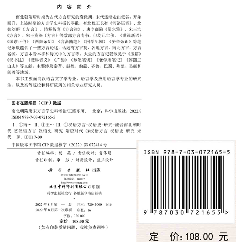现货南北朝隋唐宋方言学史料考论王耀东著科学出版 社9787030721655