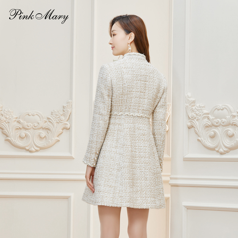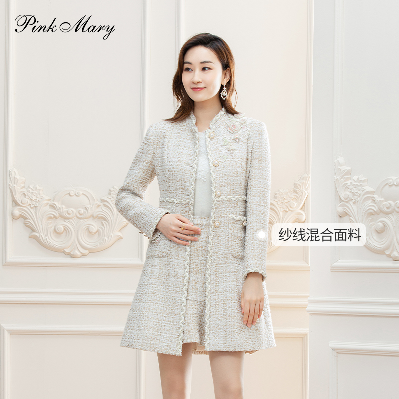 预售COCOBELLA小香风毛呢外套女新款 醋酸大衣WL3226 粗花呢中长款