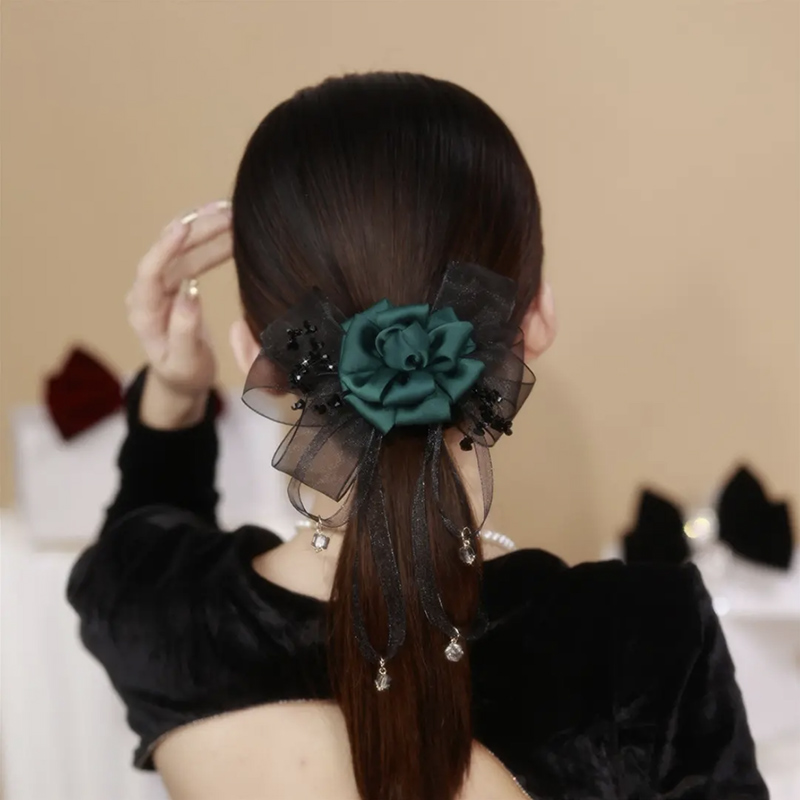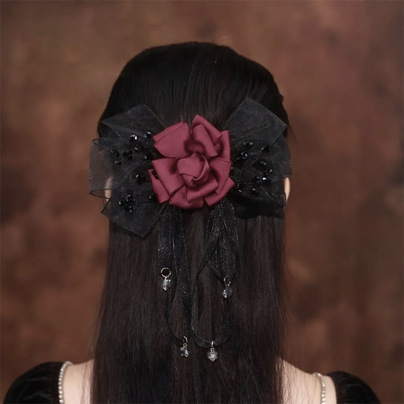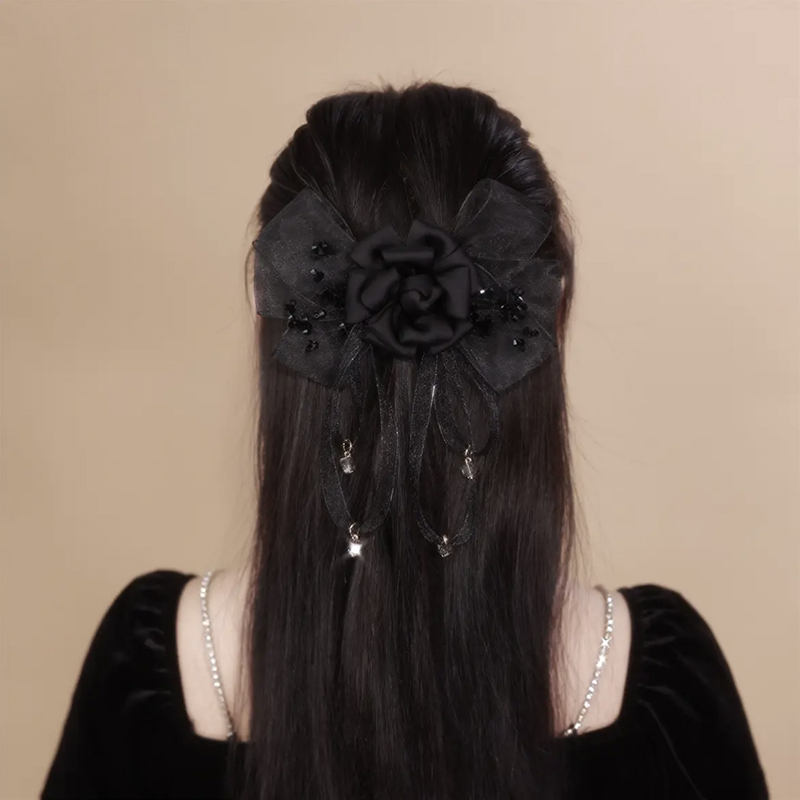 网红爆款 蝴蝶结发夹女后脑勺网纱玫瑰一字夹弹簧夹发卡子 轻奢时尚