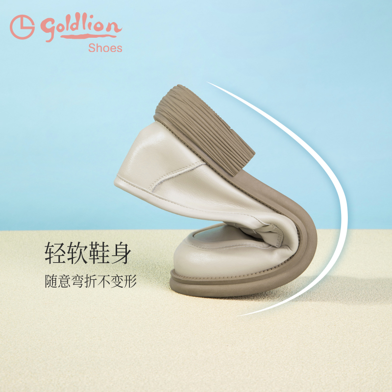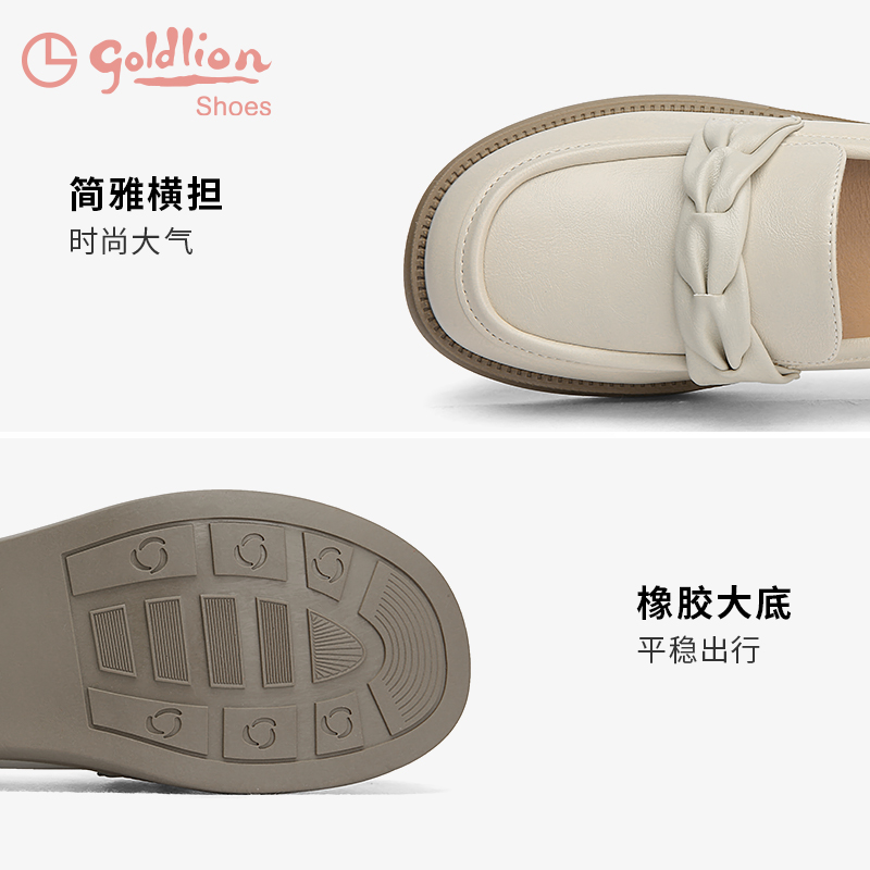 一脚蹬平底乐福鞋 金利来女鞋 真皮单鞋 英伦复古圆头黑色皮鞋 女 秋季