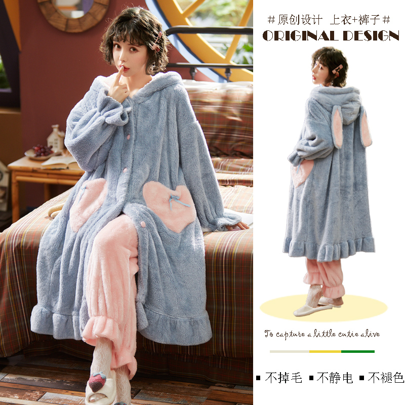 春秋法兰绒家居服 海岛绒套装 轩靓珊瑚绒睡衣女秋冬季 加厚保暖长袖