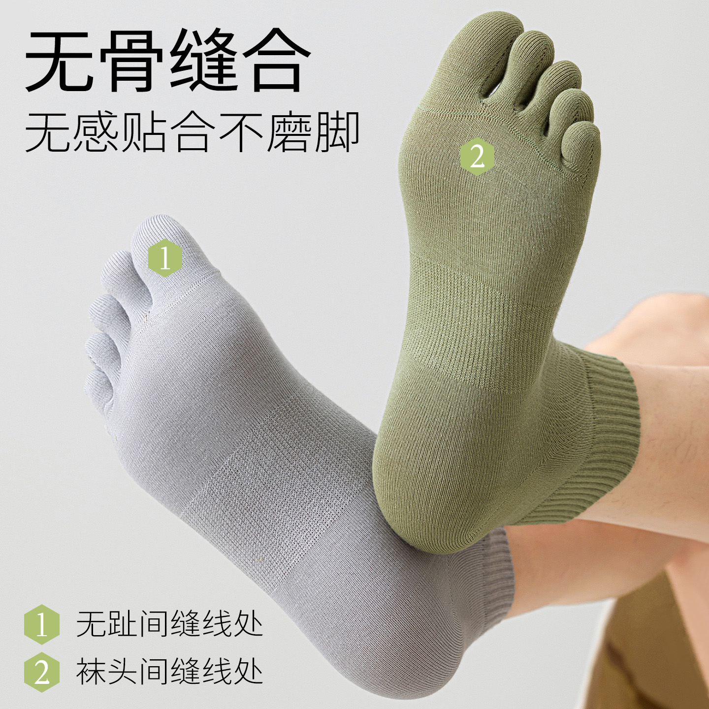 纯棉五指袜网眼透气抗菌防臭中筒袜分趾袜 薄款 亲相见袜子男士 夏季