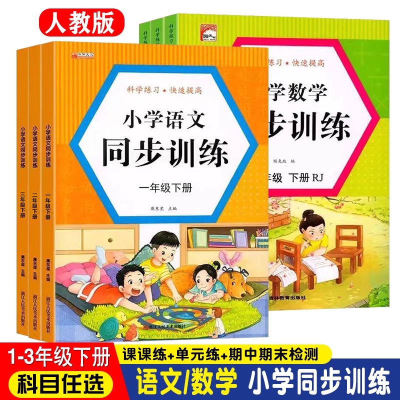 小学生教辅特价 语文数学教材同步一升二万物复书二升三暑假 清仓下册一二三四五六年级同步训练测试卷口算题卡应用题练字贴人教版