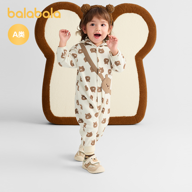 巴拉巴拉婴儿连体衣秋装 时髦可爱加绒 宝宝外出包屁衣爬服2025新款