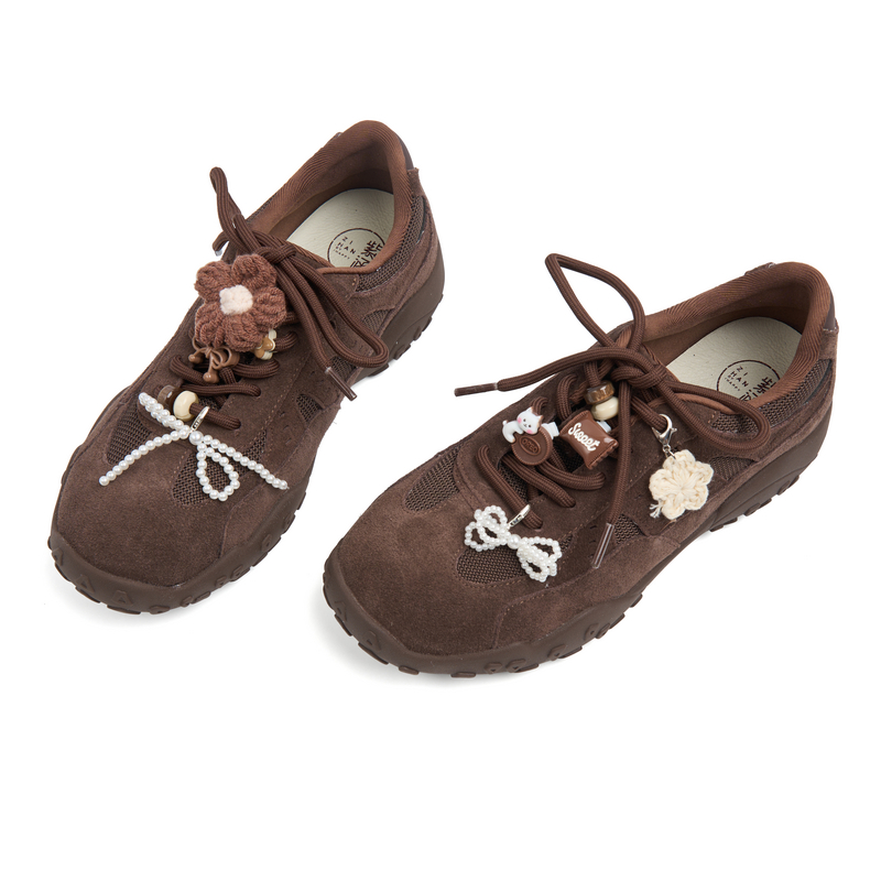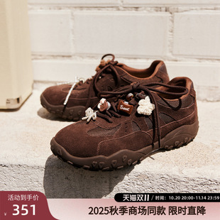 舒适透气轻便户外运动休闲鞋 新款 女2025年秋季 紫涵复古绒面德训鞋