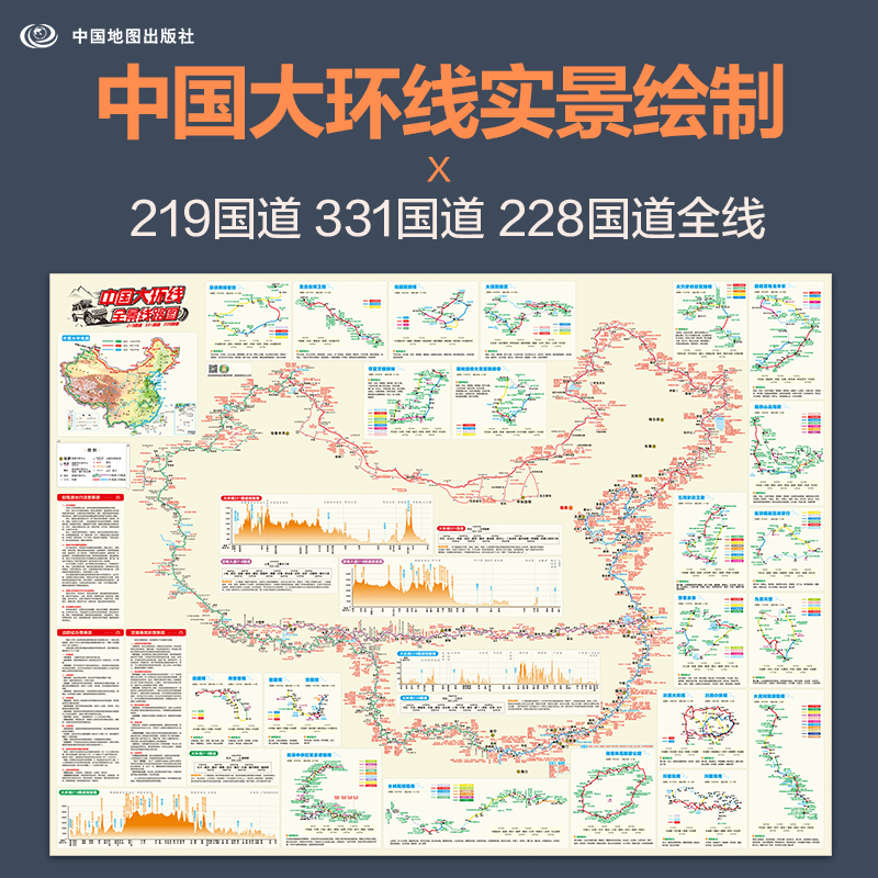 中国自驾攻略图 2025新版 展开尺寸约117×87cm 自驾线路解码 双面覆膜经久耐用可折叠 主题线路里程数行程建议景点 自驾攻略图