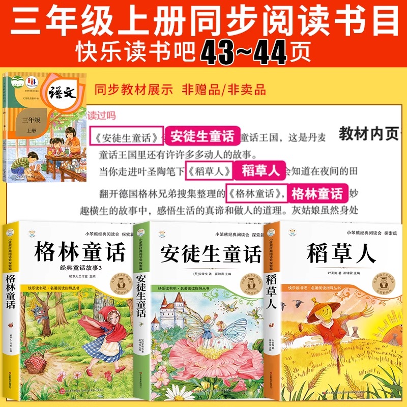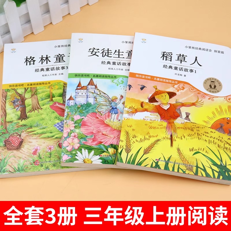 安徒生童话全集格林童话故事书稻草人书叶圣陶快乐读书吧三上阅读书籍配套人教版 全套3册稻草人三年级上册必读正版 课外书注音版