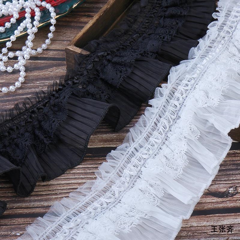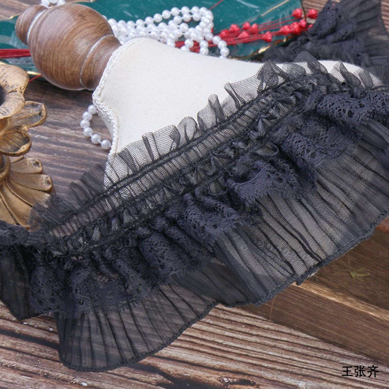蕾丝花边辅料黑色裙子下摆布料假领子高端衣领窗帘边装 饰褶皱纱