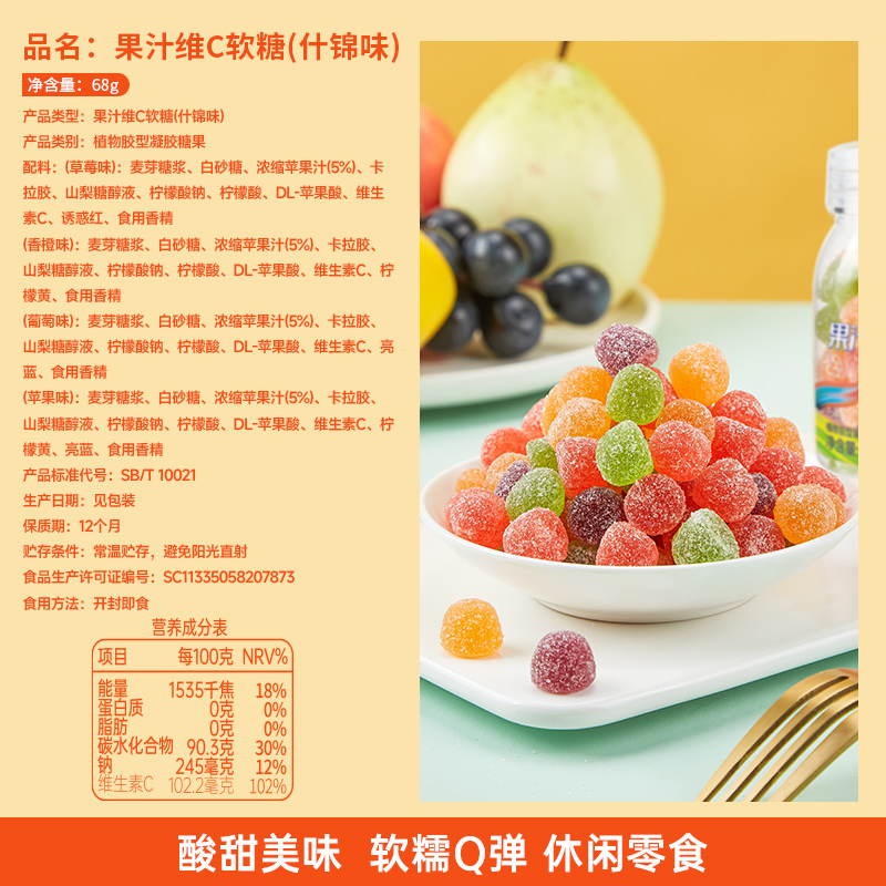 维C果汁软糖水果味糖果吃 批发Q糖橡皮糖结婚喜糖 解馋小零食散装