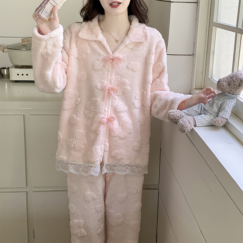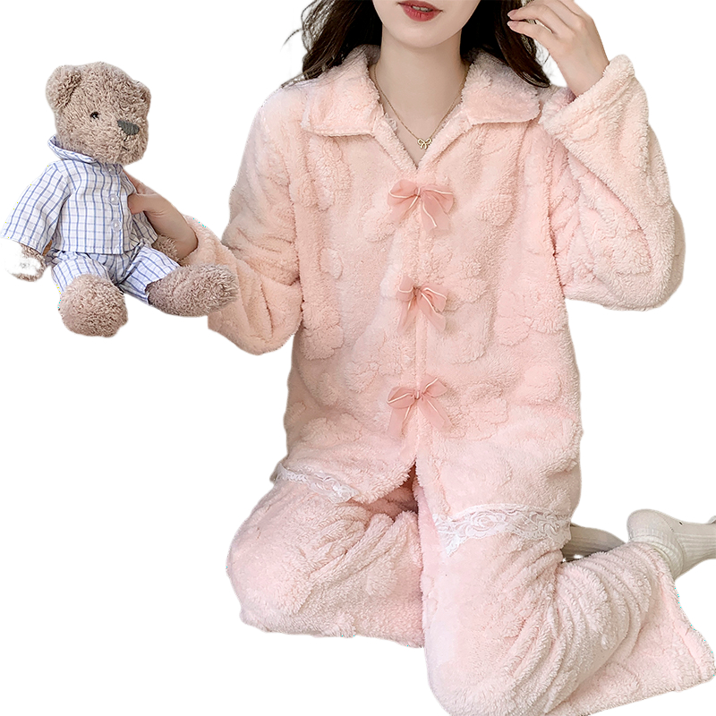 春秋法兰绒家居服 海岛绒套装 轩靓珊瑚绒睡衣女秋冬季 加厚保暖长袖