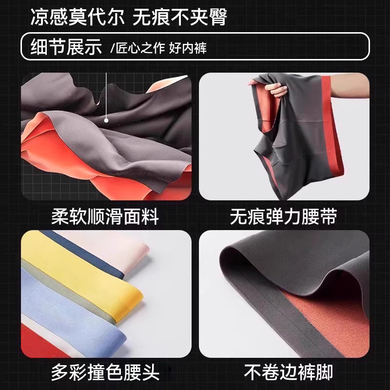 无痕抗菌纯棉裆平角短裤 啄木鸟男士 2025新款 莫代尔男生四角裤 内裤