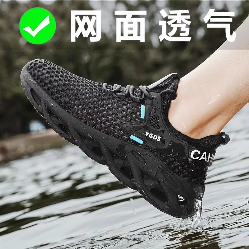 软底防滑百搭黑色跑步潮鞋 2025男鞋 网面运动鞋 透气防臭薄款 夏季