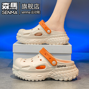 厚底增高女士户外沙滩凉鞋 外穿防滑防臭包头拖鞋 女夏季 森马洞洞鞋
