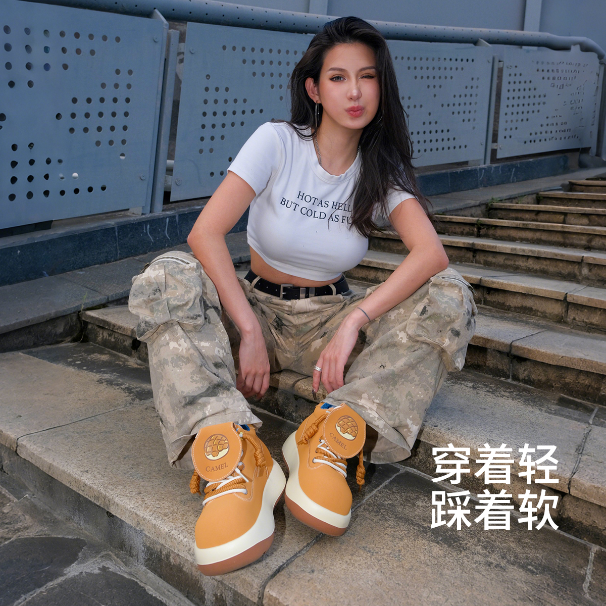户外工装 骆驼马丁靴女鞋 短靴子英伦风厚底爆款 新款 大黄靴 2025秋季