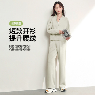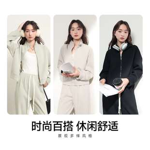 女一整套Q 宽松立领外套阔腿裤 班尼路S&K系列卡其色运动套装 女新款