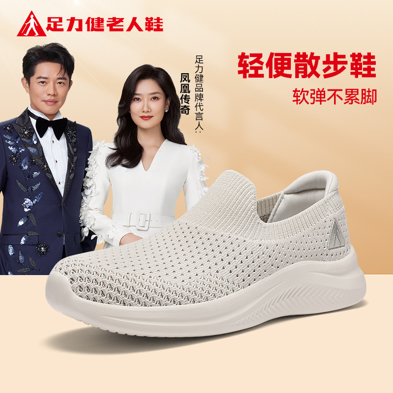 网面透气中老年妈妈一脚蹬健步鞋 夏季 官方旗舰店正品 足力健老人鞋