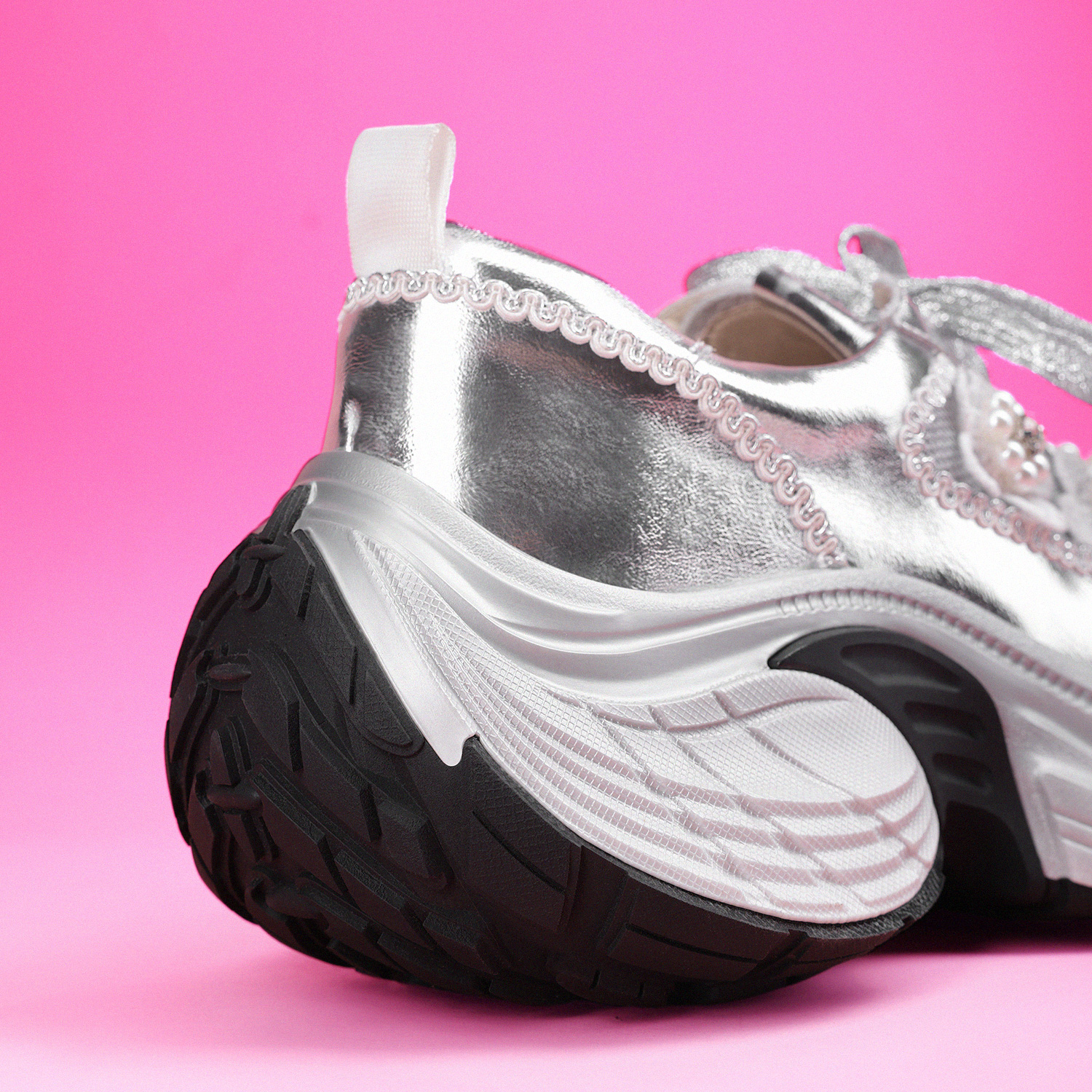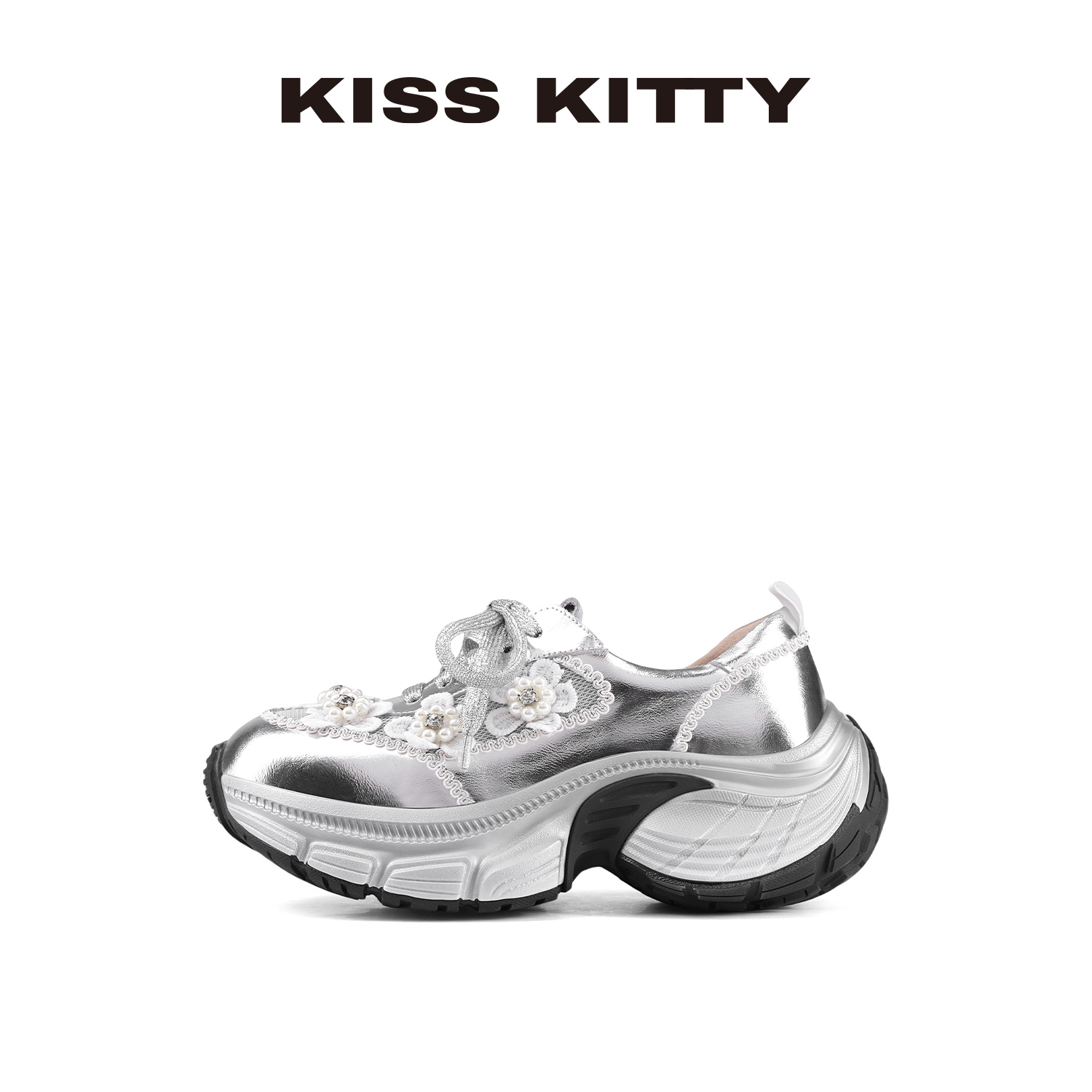 女25夏季 透气增高运动女鞋 新款 子女款 鞋 KISSKITTY厚底银色老爹鞋