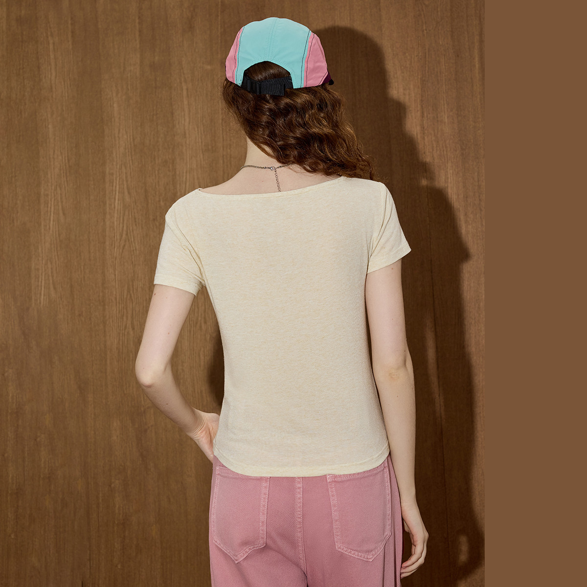女式 辣妹2025夏季 T恤 休闲纯欲风露肩短袖 coolhut纯色百搭荡领短袖