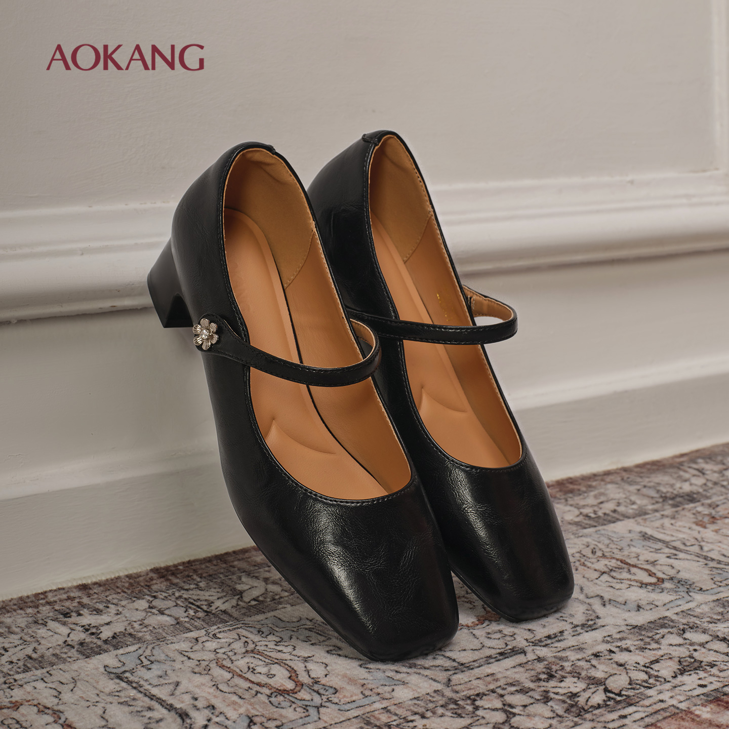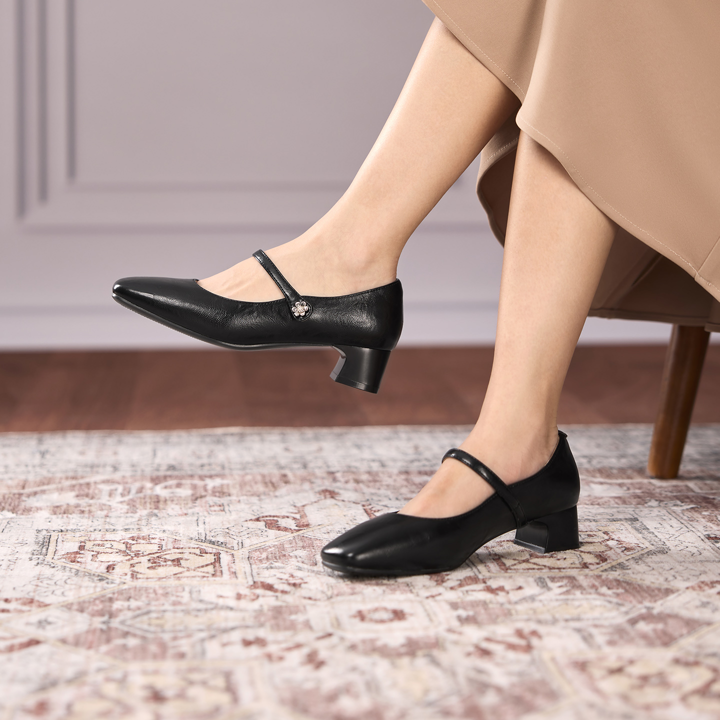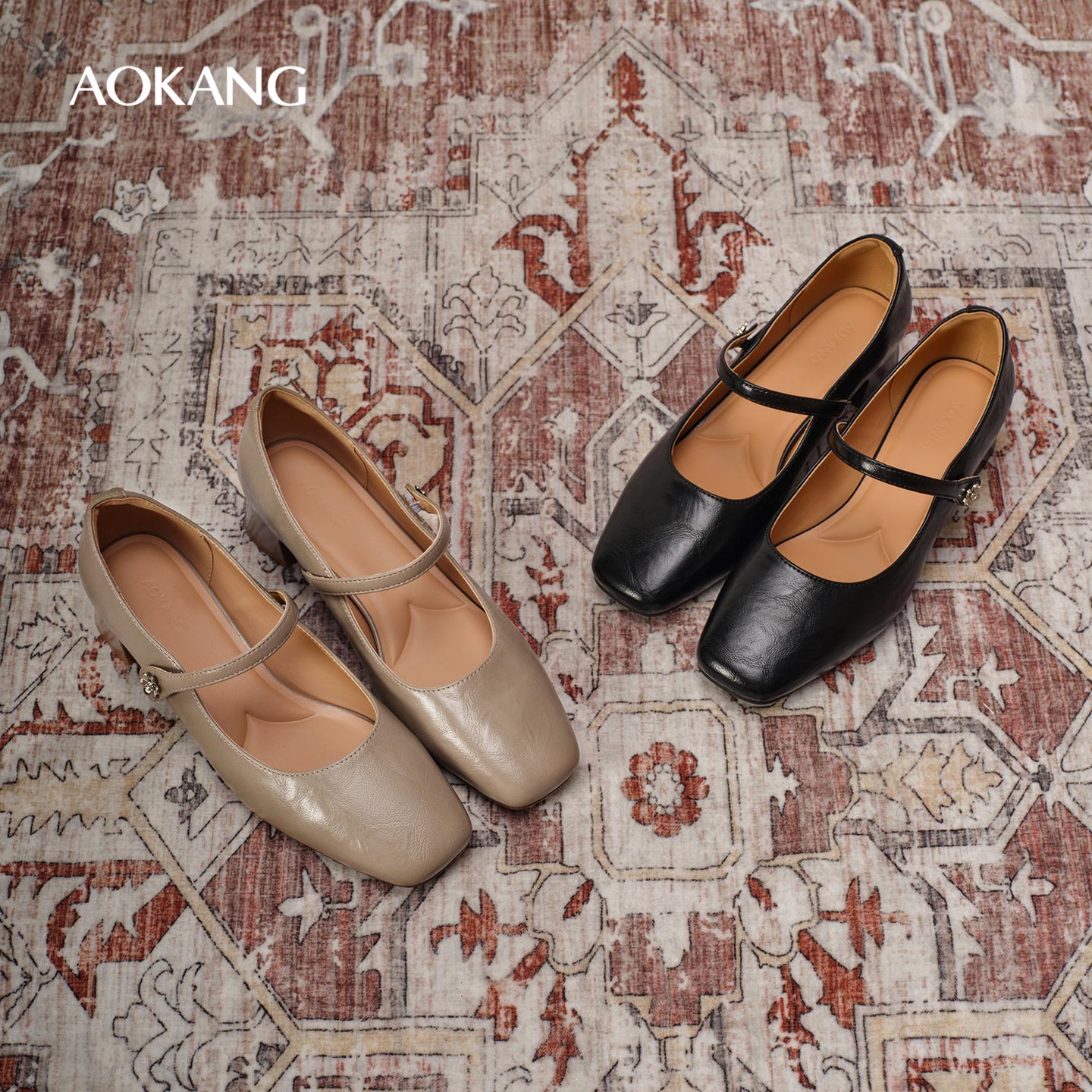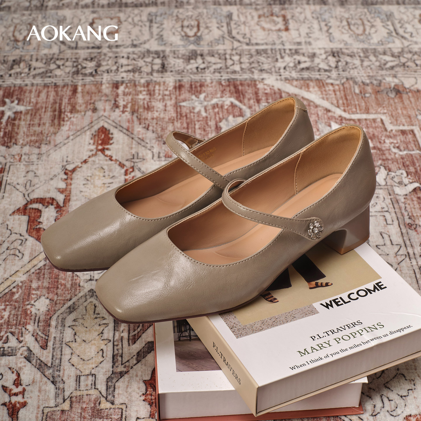 仙女风瓢鞋 秋季 浅口百搭中跟奶奶鞋 大码 真皮单鞋 女鞋 粗跟2025新款