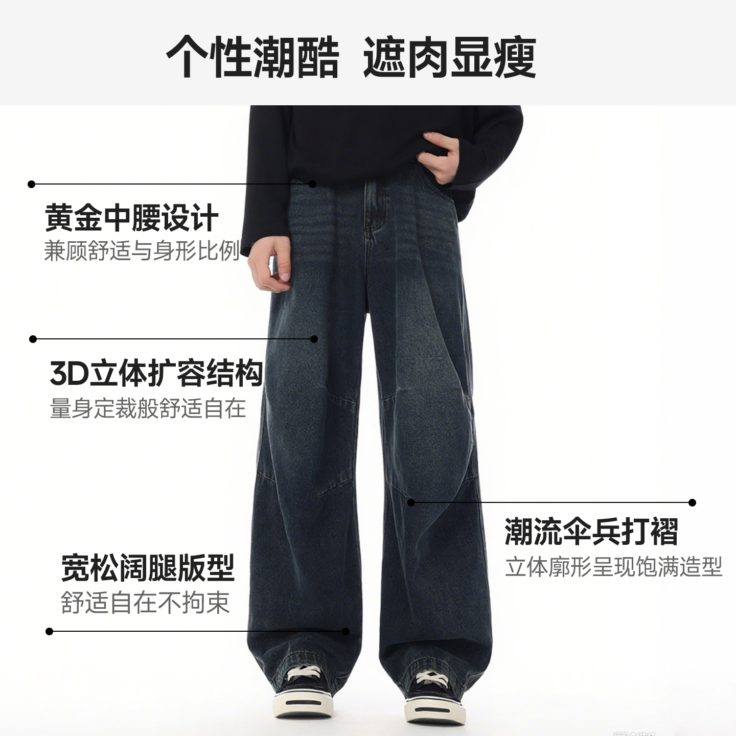 新款 潮牌直筒裤 男牛仔裤 子复古美式 男生夏 宽松阔腿裤 唐狮25春秋季