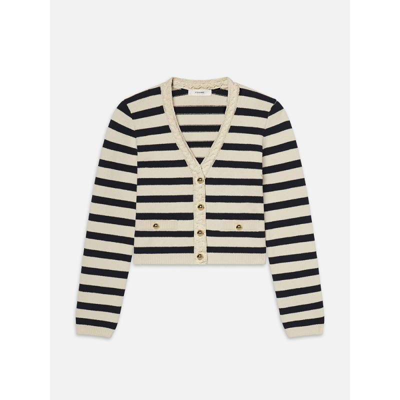 简约条纹针织长袖 FRAME女士时尚 开衫 2025早秋新款