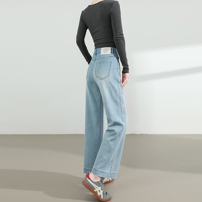 女2025新款 阔腿裤 秋季 子九分高腰窄版 休闲小个子裤 显瘦直筒牛仔裤