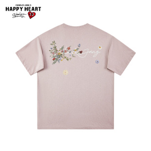 tshirt盛夏衣服 t恤纯棉情侣花卉国潮男女同款 查尔斯桃心 印花短袖