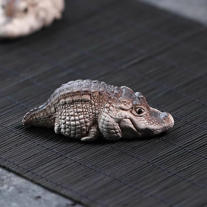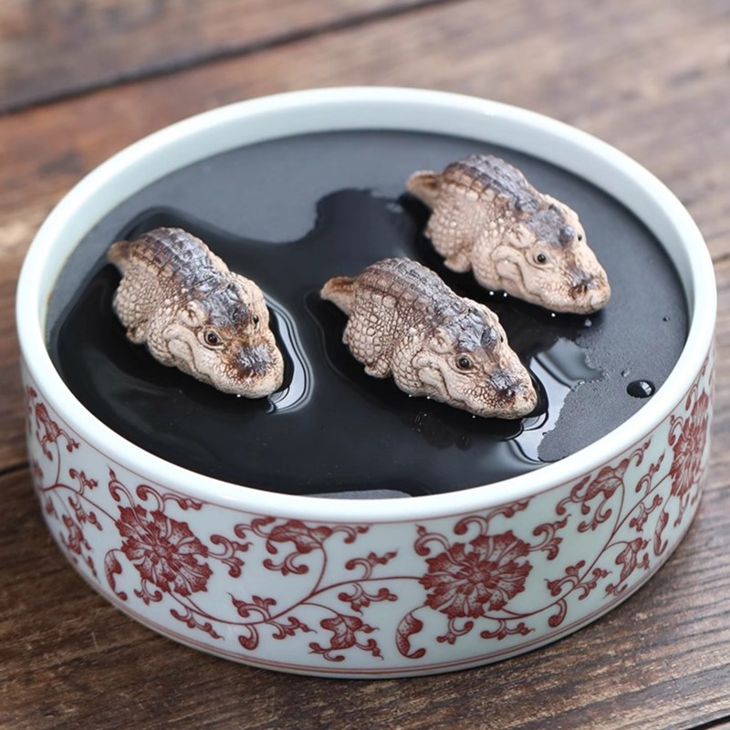 趴趴鳄宜兴原矿紫砂茶宠金融大鳄手工摆件可养茶玩 比翼连枝