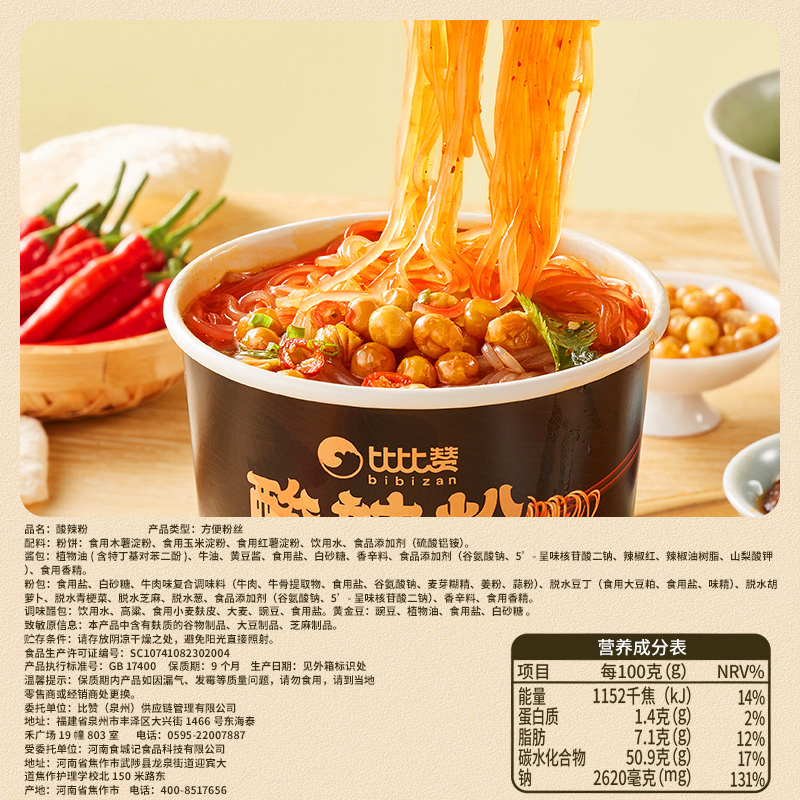 比比赞酸辣粉解馋夜宵冲泡免煮方便面休闲零食品小吃懒人速食桶装