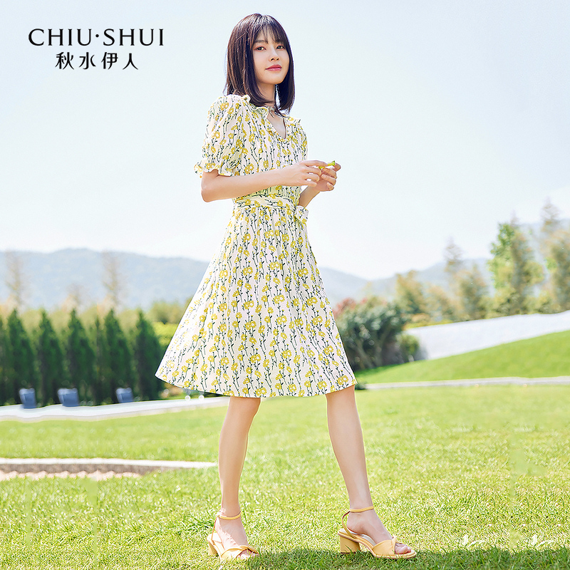 收腰显瘦设计感裙 女装 秋水伊人断码 清仓浪漫纯棉碎花连衣裙夏季