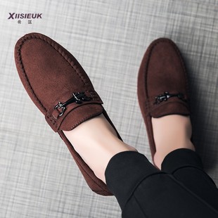 带懒人一脚蹬绒布面老北京布鞋 棕色个性 潮流无鞋 男韩版 复古豆豆鞋