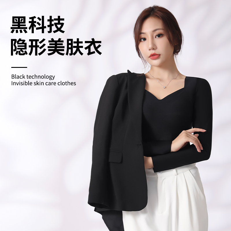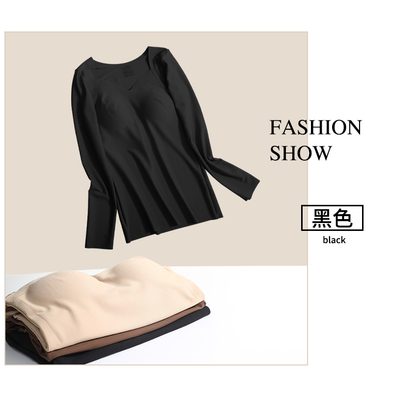 37度恒温超薄发热保暖内衣女秋衣内穿美肤肌底衣带胸垫长袖 打底衫