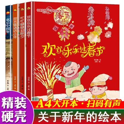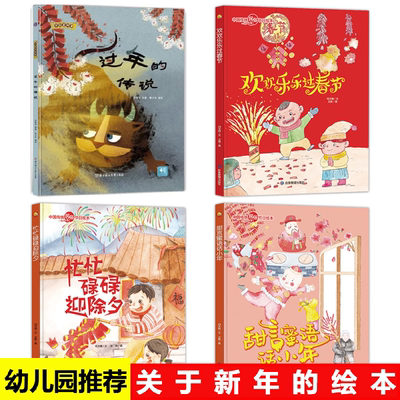 欢乐中国年过年啦元 硬皮硬壳绘本幼儿园阅读小班儿童3 宵节春节年 精装 6岁绘本主题礼物 传说除夕过年绘本 关于新年绘本