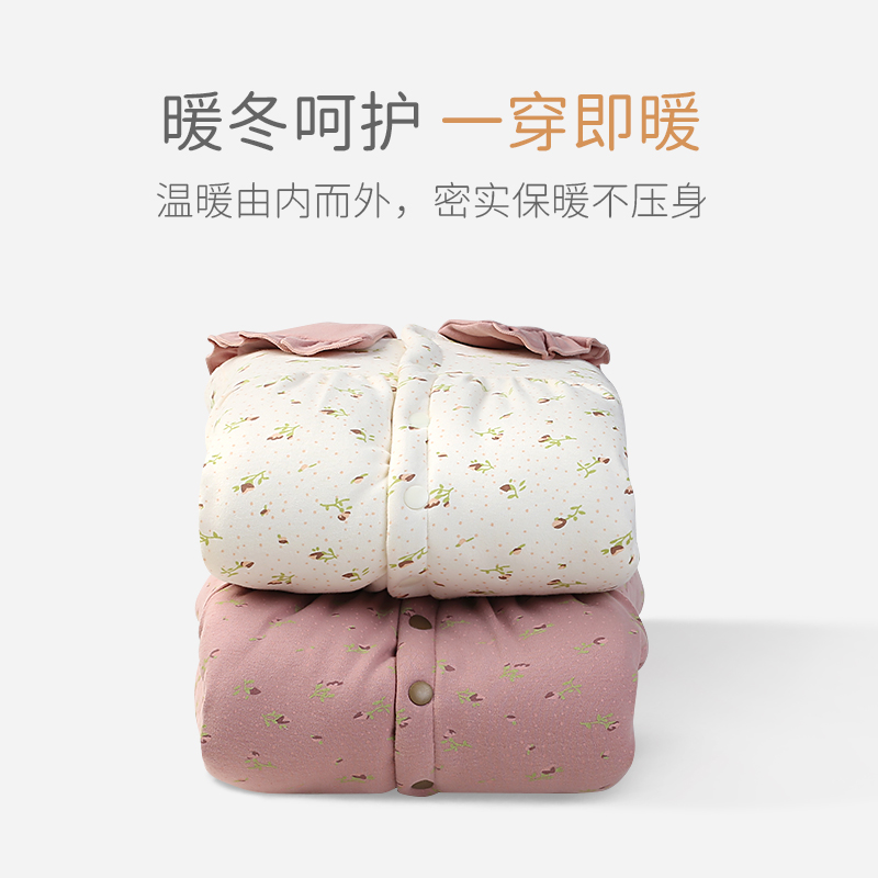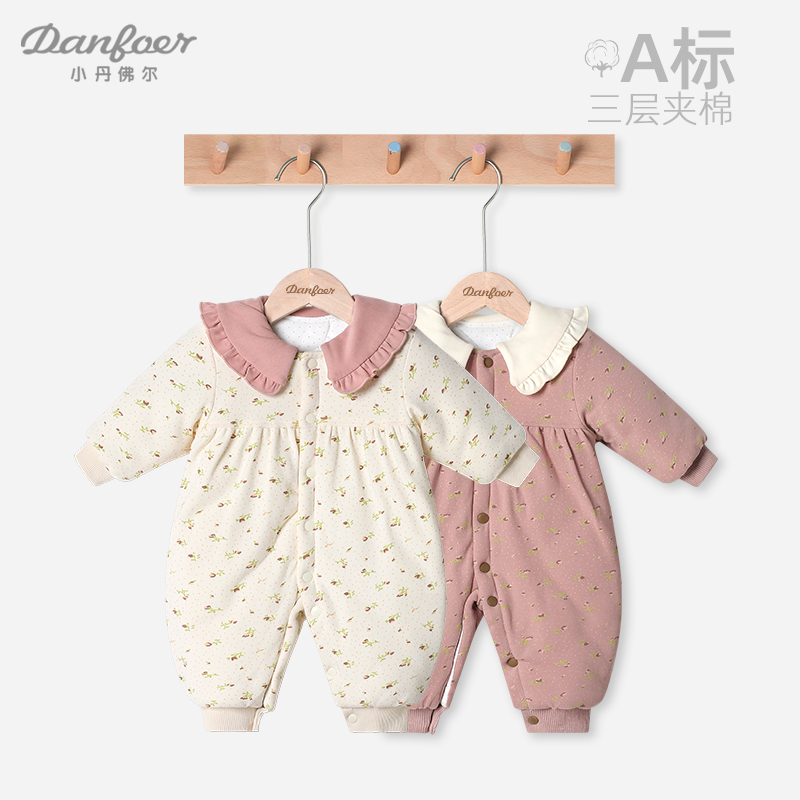 女宝宝冬季 棉服婴幼儿可爱夹棉哈衣新生儿保暖连体衣棉袄冬日恋歌