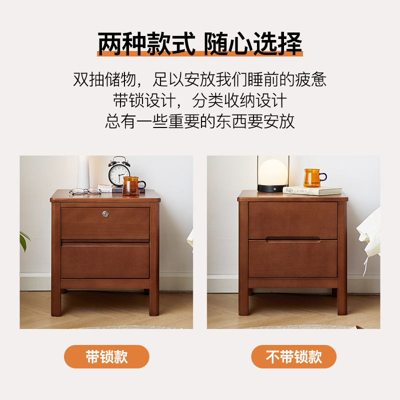 智能实木床头柜保险箱一体简约家用卧室带锁轻奢高级感小型收纳柜