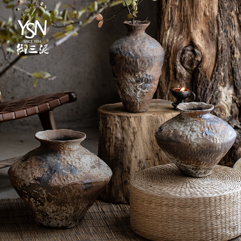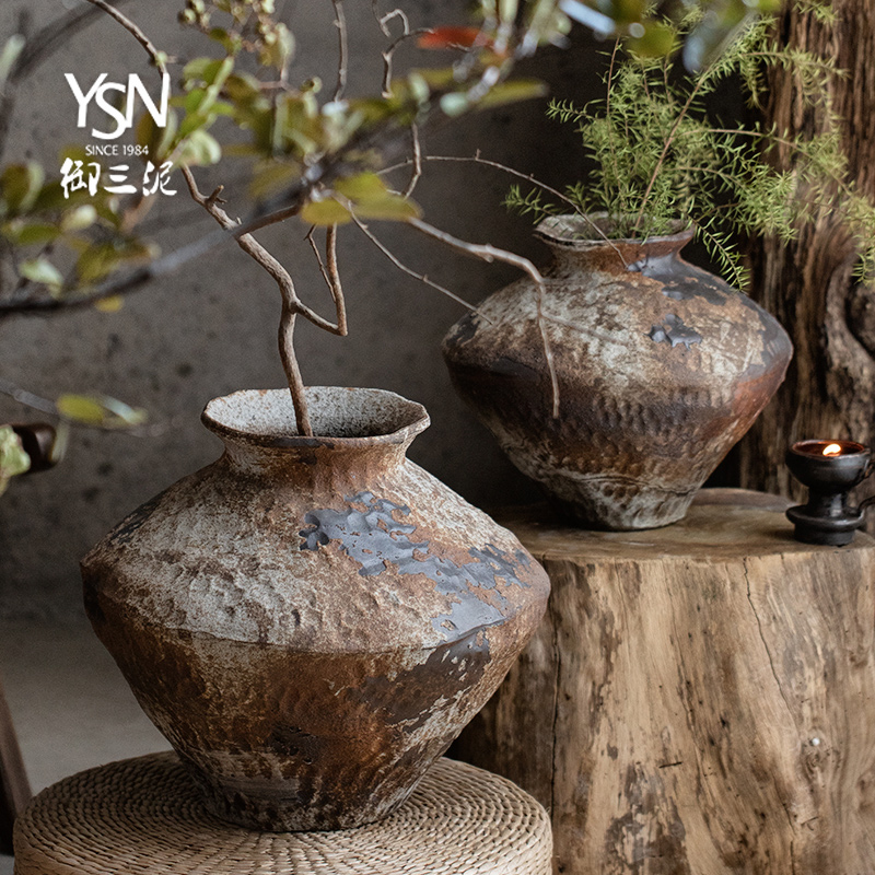 陶瓷花瓶粗陶罐瓶插干花复古手工民宿酒店玄关侘寂风高级感大摆件