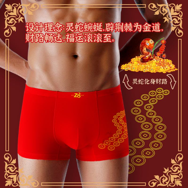 蛇年本命年 男生四角莫代尔宽松透气结婚喜庆平角裤 Z8大红男士 内裤