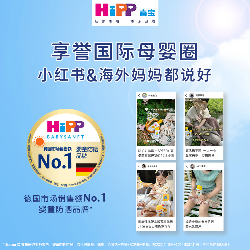 瓶 150ml HiPP喜宝柔护德国倍护低敏儿童防晒喷雾保湿 滋润型家庭装
