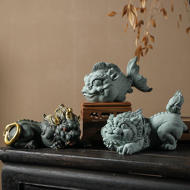 宇轩 青砂石茶宠瑞兽招财貔貅鱼缸造景祈福创意家居国风精品摆件