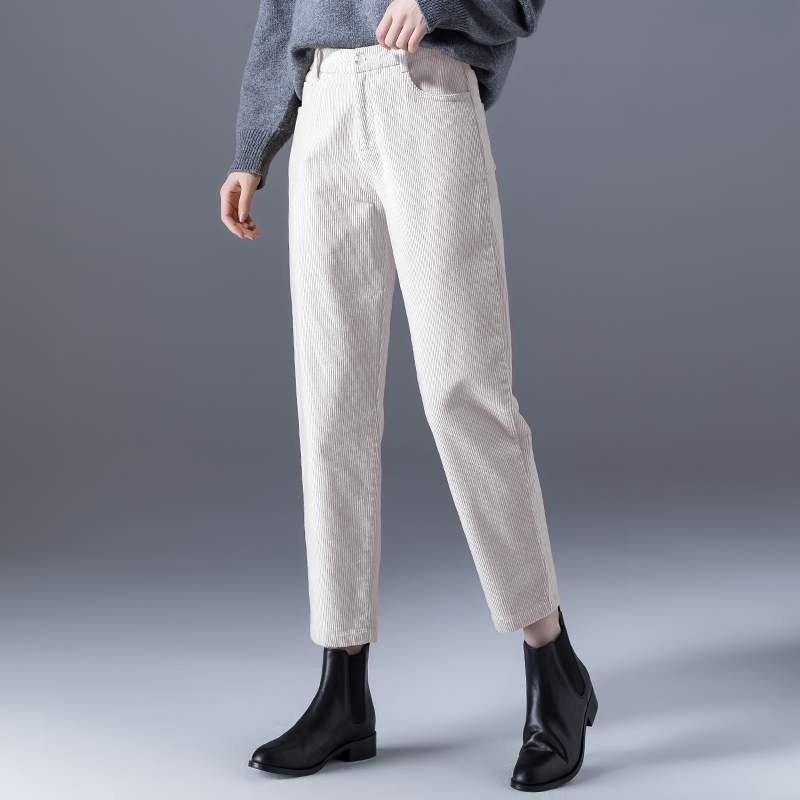 哈伦裤 清仓白色加绒灯芯绒裤 子休闲条绒女裤 秋冬裤 女小个子九分裤