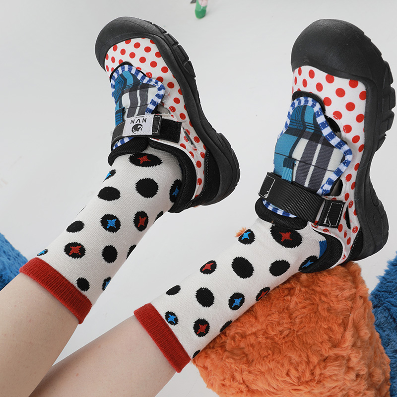 春秋季 女士袜子奶牛斑点ins风街头潮范原创可爱彩色学生中筒棉袜