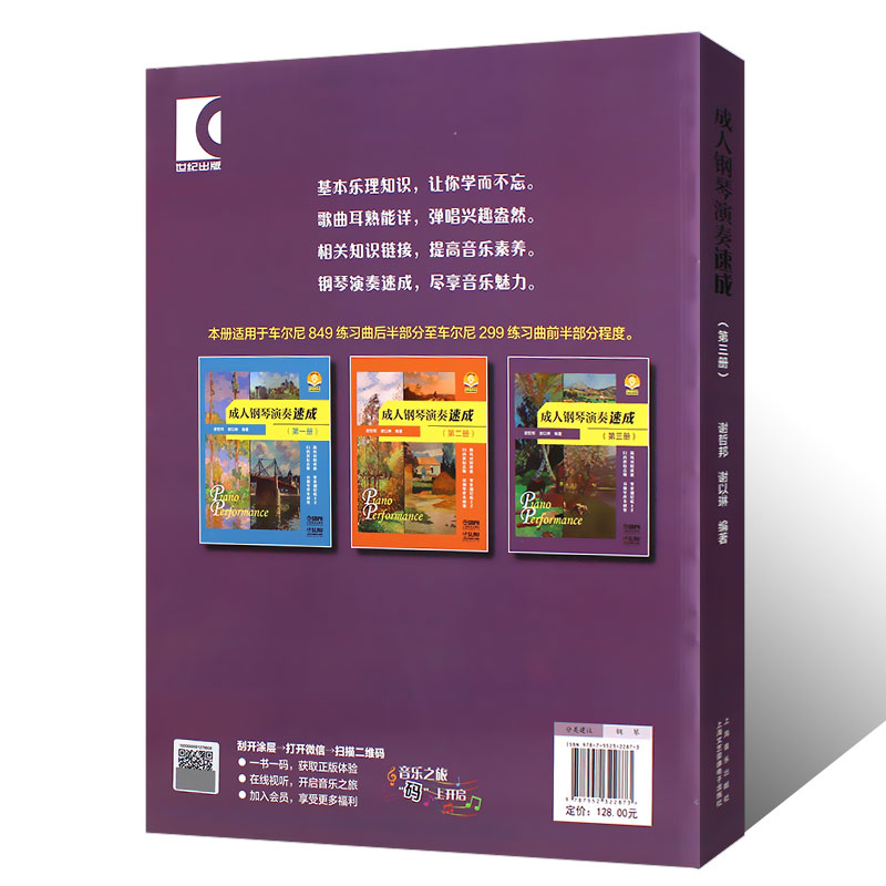 成人钢琴演奏速成 上海音乐社 第三册 双钢琴伴奏欣赏 成人钢琴自学零基础入门轻松上手双钢琴伴奏教材教程书 简线对照读谱 正版