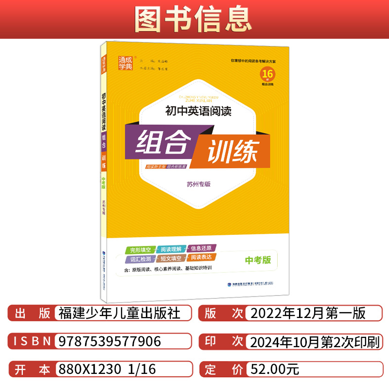 译林牛津初中生初三阅读理解与完形填空考点详解专项训练语法短文首字母填空任务型教辅 版 2025初中英语阅读组合训练中考版 苏州专