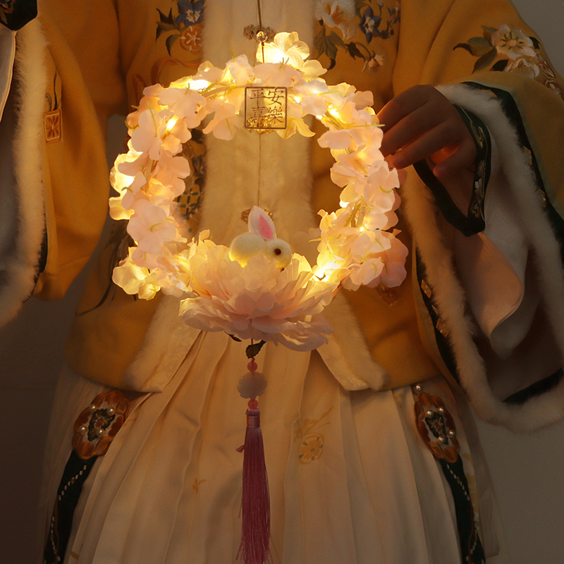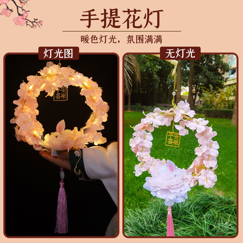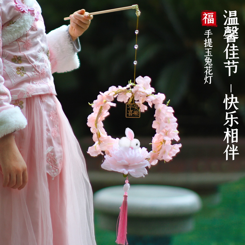 中秋节手工兔子灯笼diy材料包古风玉兔花灯儿童手提发光