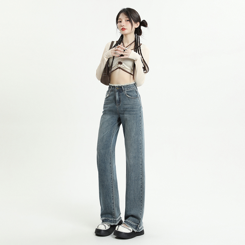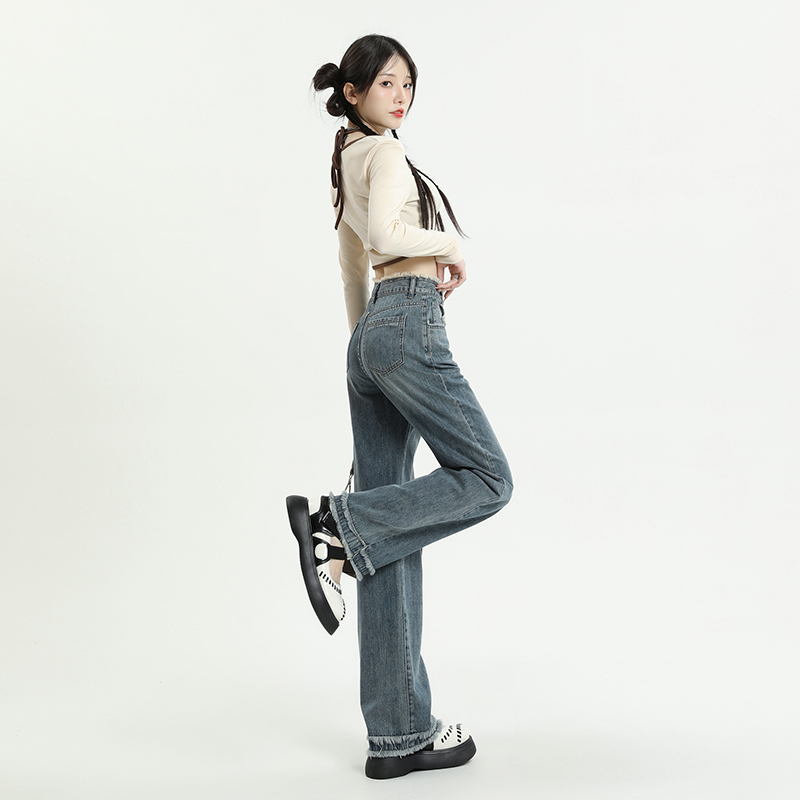 复古高腰宽松显瘦垂感直筒拖地裤 阔腿牛仔裤 秋款 爆款 子 女2025新款